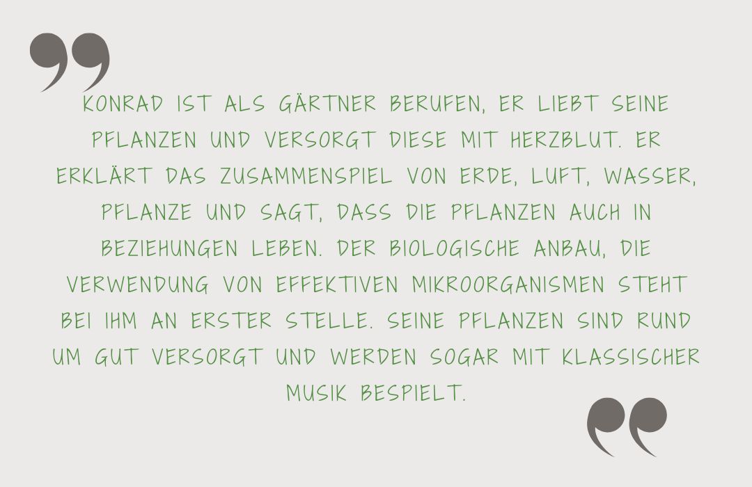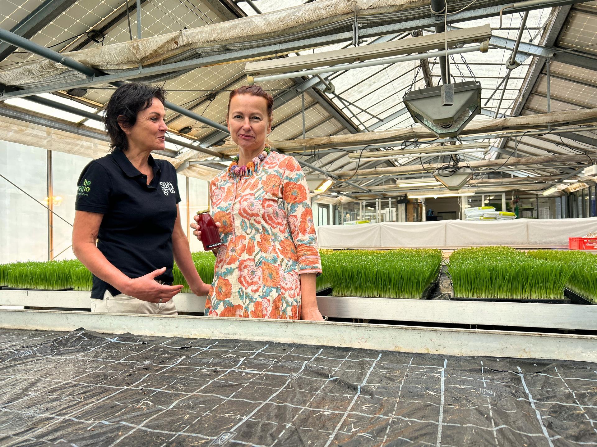 Mittlerweile gibt es bei uns nicht nur Dinkel-, Weizen-, Emmer- und Gerstengras sowie Sprossen von Sonnenblumen, Erbsen, Rettich und Lupine, sondern auch getrocknete Säfte und Kapseln. Wir bauen außerdem Ingwer, Kurkuma, Yacon, Koriander und Artemisia an. In den Gewächshäusern grünt und sprießt es.